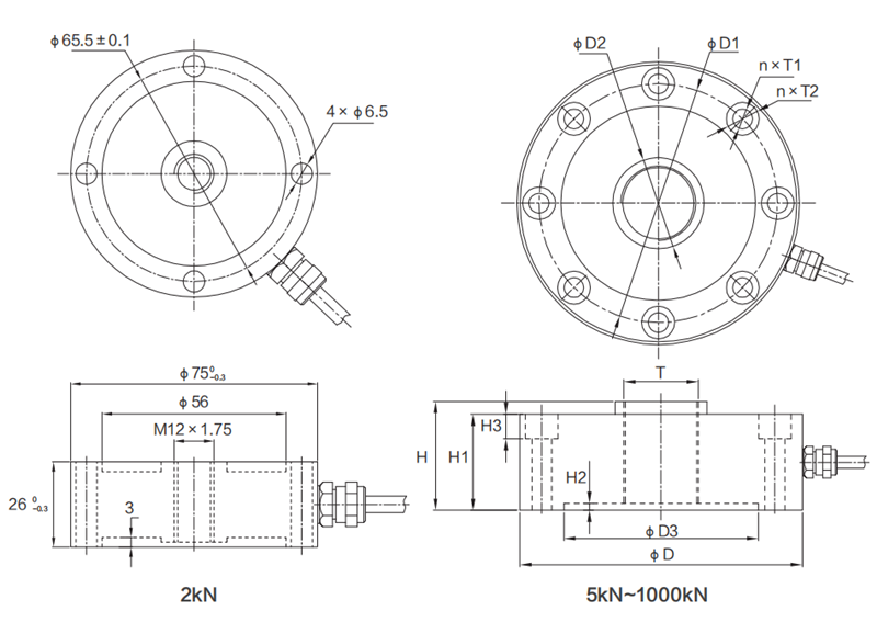 量程: 2 kN(200kg)、5 kN(500kg)、10 kN(1t)、15 kN(1.5t)、25 kN(2.5t)、50 kN(5t)、100 kN(10t)、200 kN(20t)、300 kN(30t)、500 kN(50t)、1000 kN(100t)