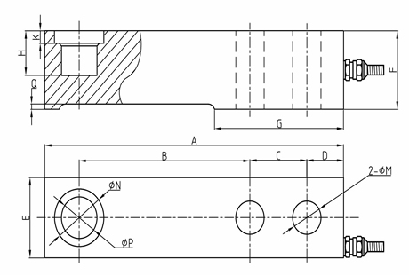 型號 | 量程(kN) | 量程(t) | A | B | C | D | E | F | G | H | K | M | N | P | Q |